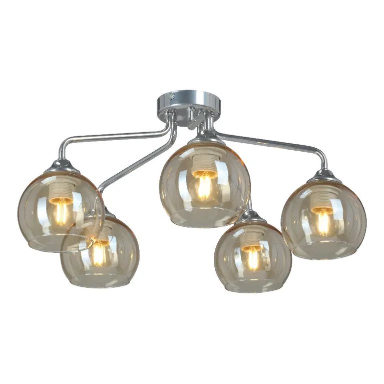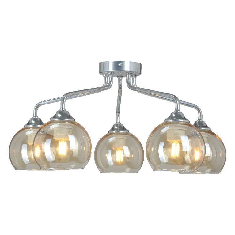 Преобладающий цвет плафонов: Прозрачный, арматуры: Хром; материал изготовления арматуры: Металл, размеры, мм: / высота 240 / диаметр 520. Общая мощность – 200 Ватт, а максимальная площадь освещения до 10 м2. Основной тип ламп, предусмотренный производителем: Накаливания с цоколем E27. В зависимости от предпочтений можно использовать лампы теплового, холодного или нейтрального света, за исключением люстр с типом цоколя LED.