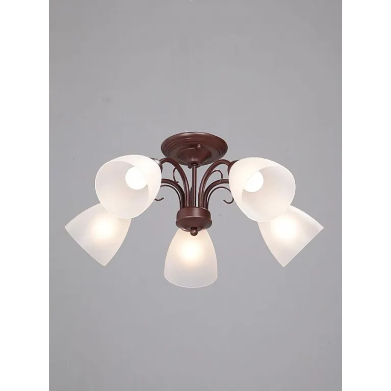 Люстра оснащена пятью лампами, что обеспечивает яркое и равномерное освещение пространства. Она идеально подходит для помещений со стандартными потолками высотой до 2,75 м. Основание выполнено из прочного металла, что гарантирует долговечность и надежность конструкции.