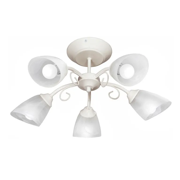 Люстра оснащена пятью лампами, которые могут быть как традиционными накаливания, так и энергосберегающими или светодиодными. Суммарная мощность ламп составляет 2650 Вт, что обеспечивает яркое и равномерное освещение пространства, создавая комфортную атмосферу в комнате.