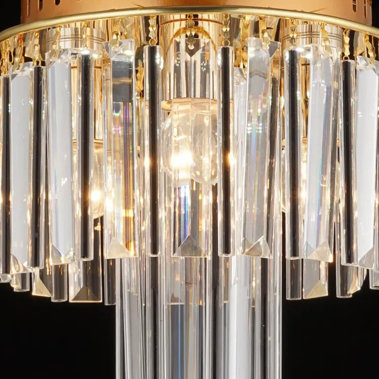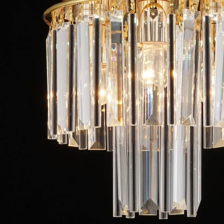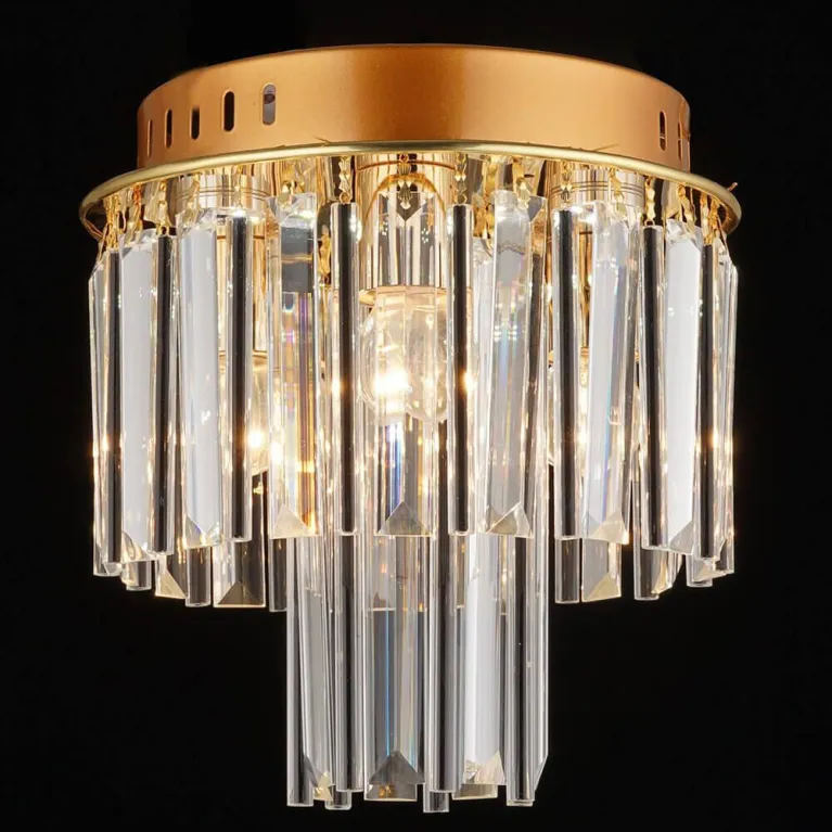 Люстра оснащена четырьмя лампами типа GU10, что позволяет использовать различные виды ламп, включая энергосберегающие и светодиодные. Такое решение обеспечивает яркое и равномерное освещение, создавая приятную атмосферу в комнате.