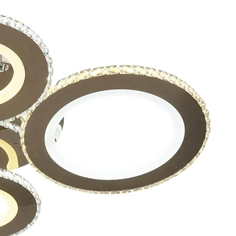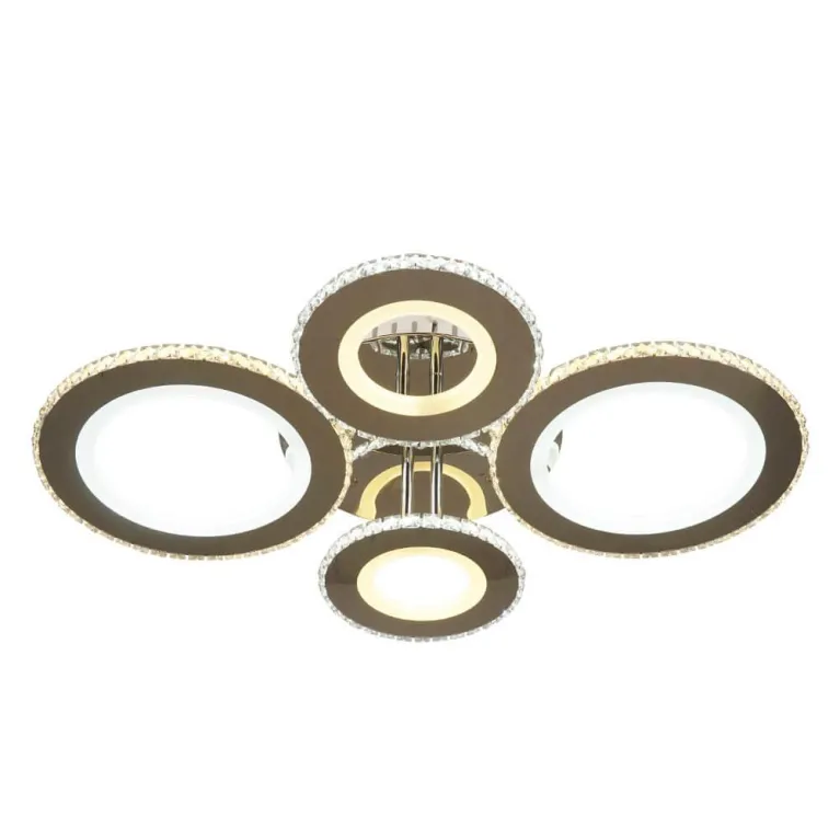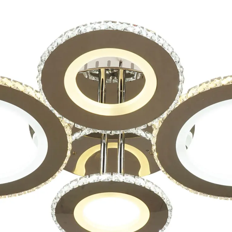 Подвесная конструкция люстры позволяет регулировать её высоту, что обеспечивает удобство при монтаже и адаптации к различным высотам потолков. Надежное крепление гарантирует стабильность и безопасность в эксплуатации.
