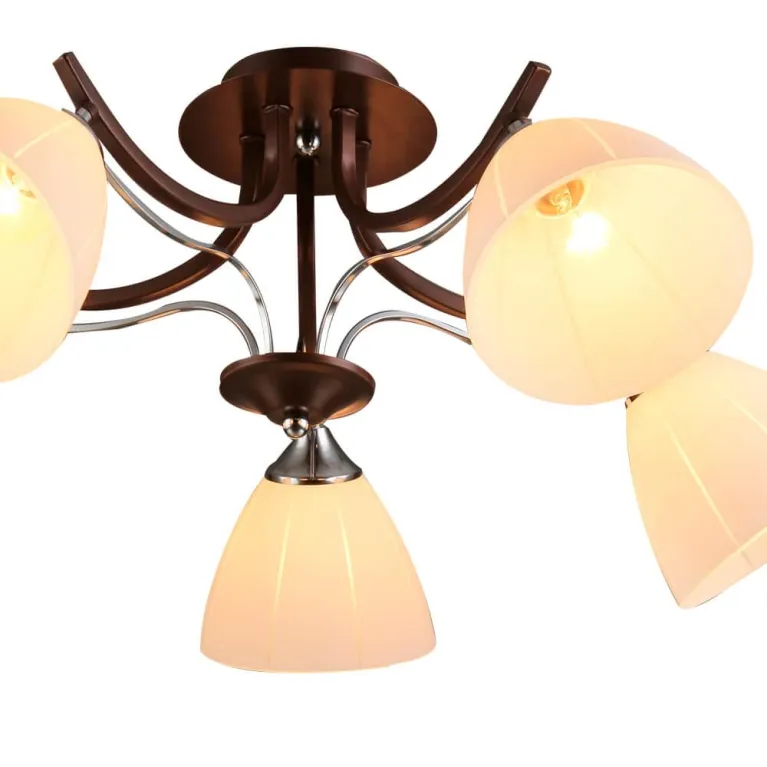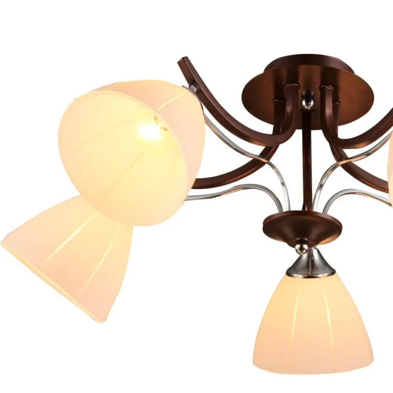 Люстра оснащена шестью лампами типа GU10, которые обеспечивают яркое и равномерное освещение. Патрон E27/GU10 позволяет использовать как традиционные, так и энергосберегающие или светодиодные лампы, что предоставляет максимальную гибкость в выборе источников света.