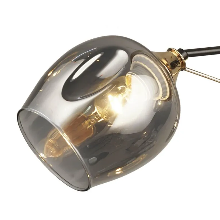 Корпус люстры выполнен из прочного металла с черным матовым покрытием, который прекрасно гармонирует с современным стилем интерьера. Плафоны из белого матового стекла обеспечивают мягкое и равномерное рассеивание света, создавая комфортное освещение в помещении.