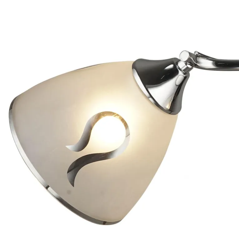 Этот светильник сочетает в себе современные линии и изысканные детали, выполненные в белом цвете с тонкими серебристыми акцентами. Основание изготовлено из прочного металла, что гарантирует долговечность и надежность конструкции.