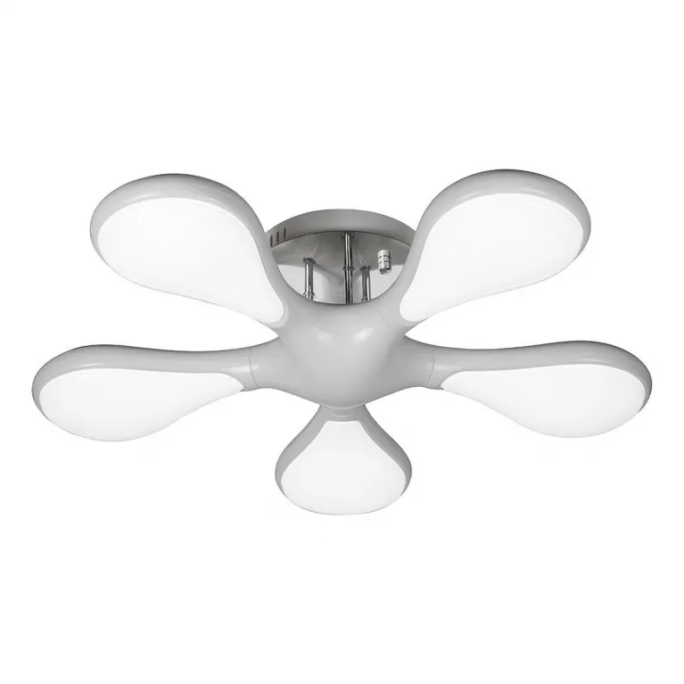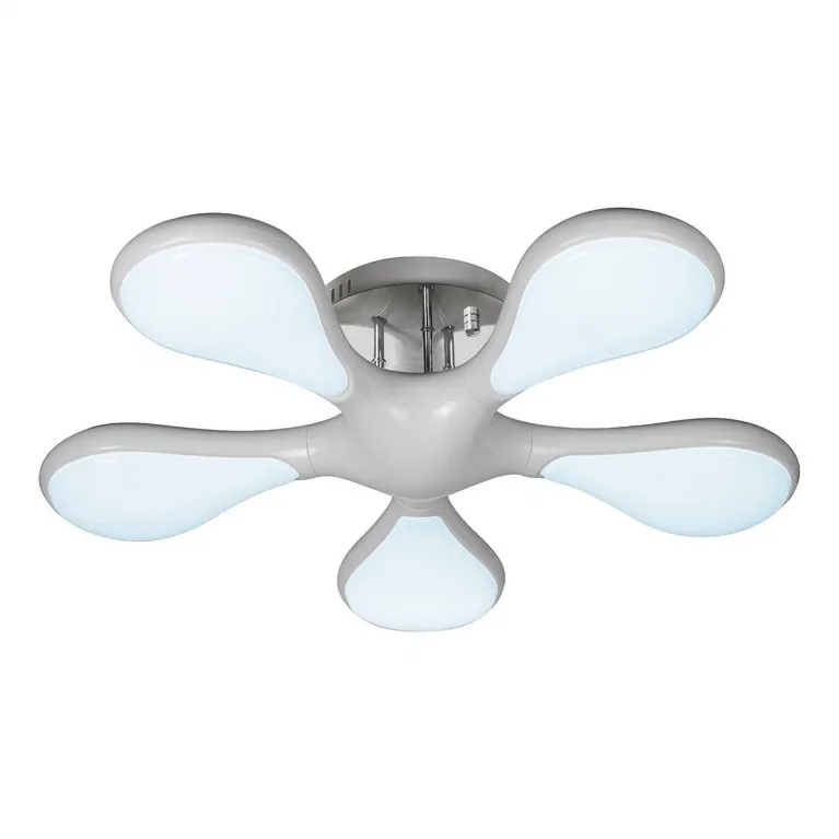 Корпус люстры выполнен из прочного металла и имеет белый цвет, придающий изделию современный и свежий вид. Плафоны изготовлены из высококачественного пластика, что гарантирует долговечность и стойкость к внешним воздействиям.