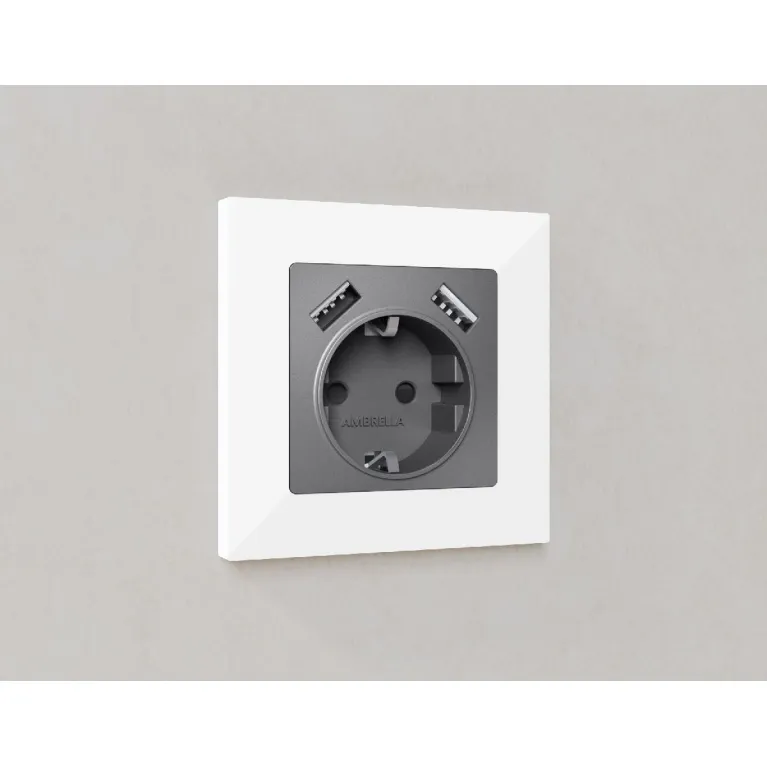 Лицевая панель для розетки с/з со шторками 2USB A+A Ambrella Volt Alfa AP6590 в Нижнем Новгороде китайского производителя Ambrella Volt будет долго служить владельцу, бесперебойно выполняя свои функции. Моделью просто пользоваться. При заказе в интернет-магазине «Иллюзия света» цена – 230 ₽.