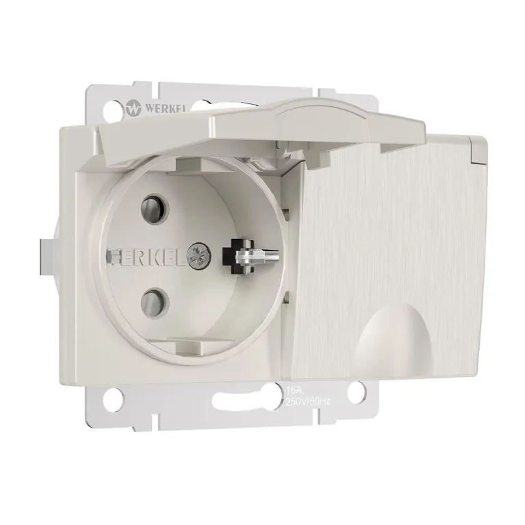 Розетка двойная влагозащищенная с заземлением с защитной крышкой и шторками Werkel перламутровый риф в Нижнем Новгороде