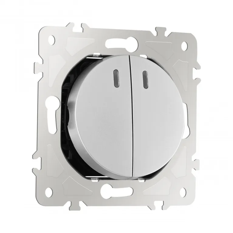 Выключатель двухклавишный с подсветкой Arte Milano 202.31-2.silver в Нижнем Новгороде российского производителя Arte Milano будет долго служить владельцу, бесперебойно выполняя свои функции. Моделью просто пользоваться. При заказе в интернет-магазине «Иллюзия света» цена – 418 ₽.