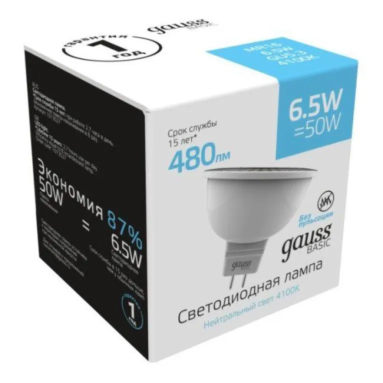 Лампа светодиодная Gauss GU5.3 6,5W 4100К матовая 1013527 в Нижнем Новгороде российского производителя Gauss будет долго служить владельцу, бесперебойно выполняя свои функции. Моделью просто пользоваться. При заказе в интернет-магазине «Иллюзия света» цена – 135 ₽.
