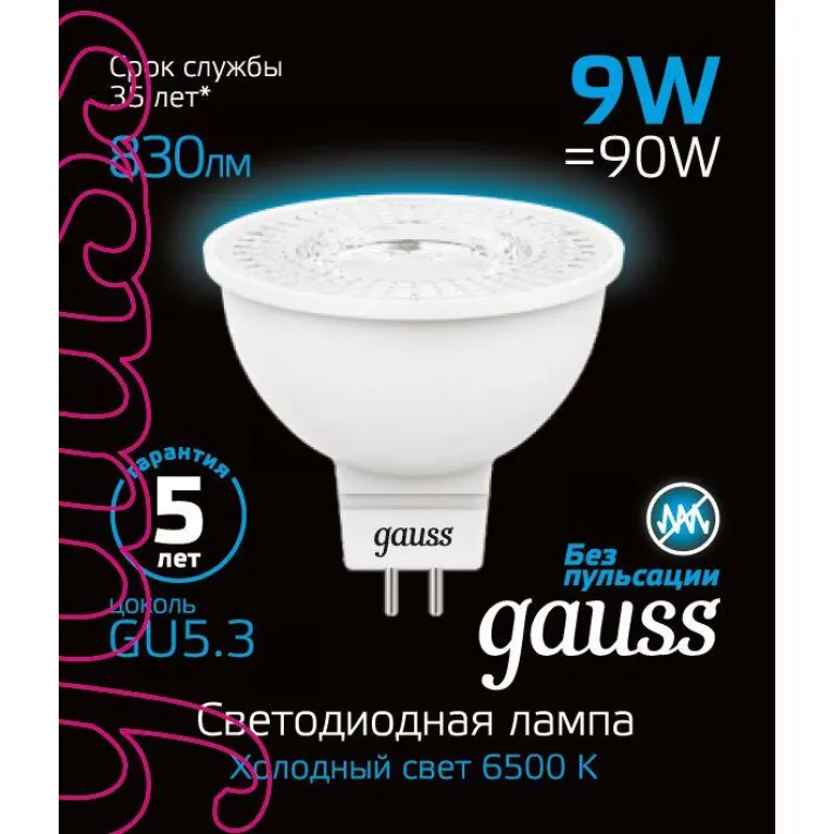 Лампа светодиодная Gauss GU5.3 9W 6500K матовая 101505309 в Нижнем Новгороде российского производителя Gauss будет долго служить владельцу, бесперебойно выполняя свои функции. Моделью просто пользоваться. При заказе в интернет-магазине «Иллюзия света» цена – 409 ₽.