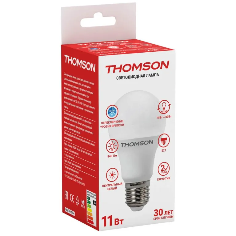 Светодиодная лампа Thomson E27 11W 4000K груша матовая TH B2164-146502 — это идеальное решение для тех, кто ценит современные технологии и эстетичный дизайн. Этот светильник сочетает в себе высокую энергоэффективность и качественное освещение, что делает его подходящим для различных помещений.
