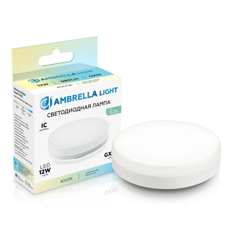Светодиодная лампа Ambrella Light Bulbing GX53 12W 4000K 531204 в Нижнем Новгороде китайского производителя Ambrella light будет долго служить владельцу, бесперебойно выполняя свои функции. Моделью просто пользоваться. При заказе в интернет-магазине «Иллюзия света» цена – 162 ₽.