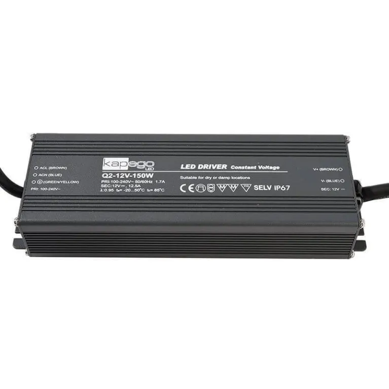 Корпус блока выполнен из прочного пластика, что обеспечивает его долговечность и стойкость к внешним воздействиям. Номинальная мощность устройства составляет 150 Вт, что позволяет одновременно питать несколько светодиодных лент, обеспечивая яркое и равномерное освещение. Напряжение питания 12 В является стандартным для большинства низковольтных осветительных приборов.