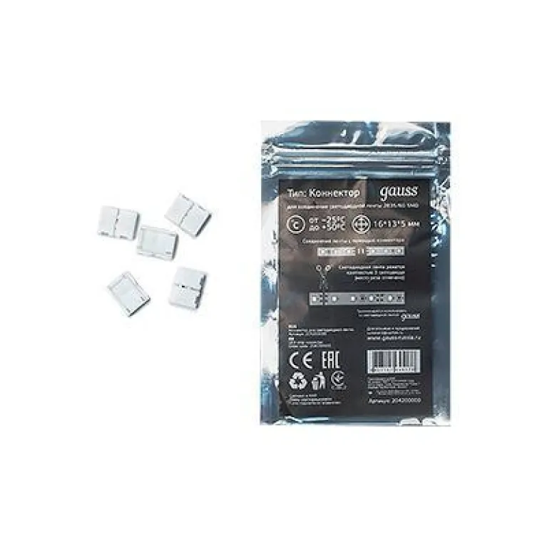 Коннектор Gauss для светодиодной ленты 5050/2835 120SMD LC-K30-120I220-WH коннектор, предназначенный для простого и удобного подключения светодиодных лент, станет неотъемлемой частью вашей осветительной системы. Этот коннектор подходит для лент с диодами 5050 и 2835, обеспечивая надежное соединение и стабильную работу освещения.