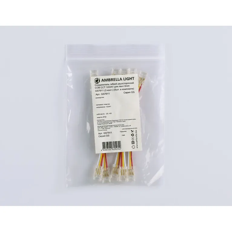 Соединитель гибкий двухсторонний Ambrella Light COB CCT 12/24V для лент 8mm (3 конт.) (5шт.) GS7911 в Нижнем Новгороде