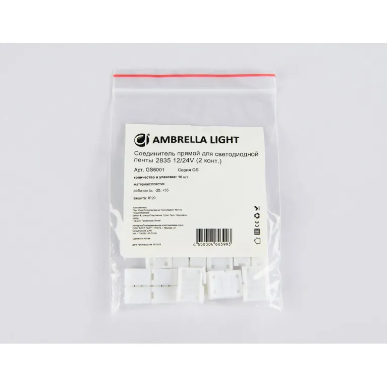 Соединитель прямой для светодиодной ленты Ambrella Light 2835 12/24V (2 конт.) (10шт.) GS6001 в Нижнем Новгороде