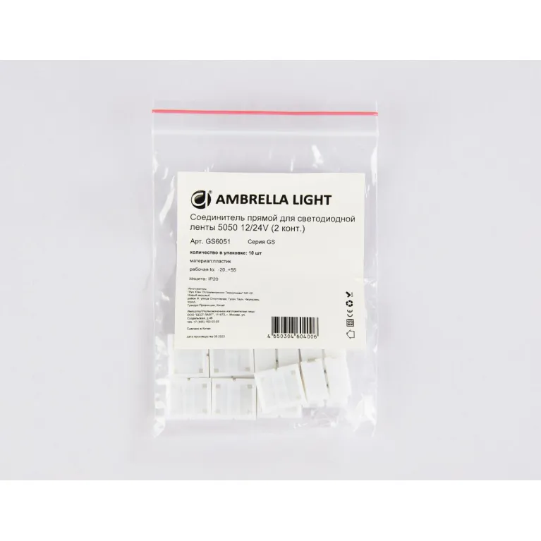 Соединитель прямой для светодиодной ленты Ambrella Light 5050 12/24V (2 конт.) GS6051 (10шт.) в Нижнем Новгороде