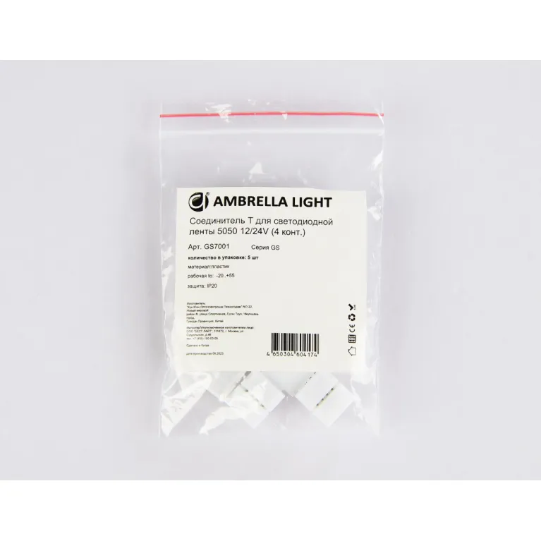 Соединитель T для светодиодной ленты Ambrella Light Illumination 5050 12/24V (4 конт.) (5шт) GS7001 в Нижнем Новгороде