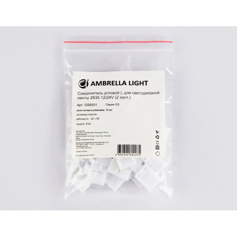 Соединитель угловой L для светодиодной ленты Ambrella Light 2835 12/24V (2 конт.) GS6501 (10шт) в Нижнем Новгороде