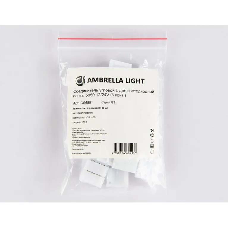 Соединитель угловой L для светодиодной ленты Ambrella Light 5050 12/24V (6 конт.) GS6801 (10шт) в Нижнем Новгороде