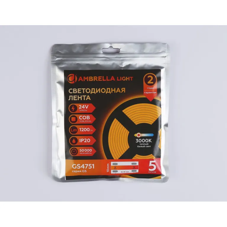 Светодиодная лента Ambrella Light Illumination COB 528Led/14W m/ 24V IP20 3000K/ 5m (2 конт.) GS4751 в Нижнем Новгороде