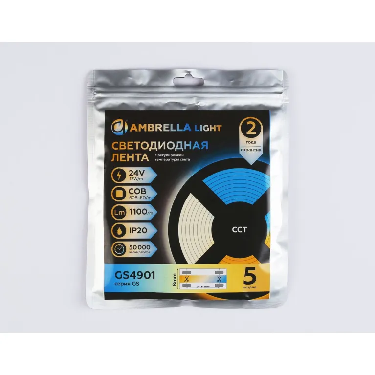 Светодиодная лента Ambrella Light Illumination COB 608Led/ 12W m/ 24V IP20 CCT 3000-6500K/ 5m GS4901 в Нижнем Новгороде