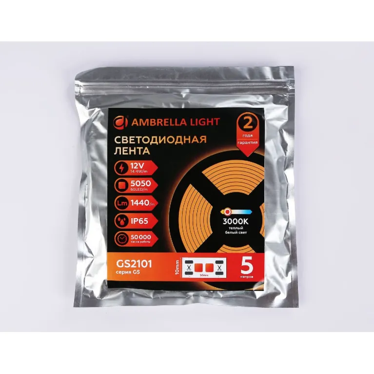 Светодиодная лента Ambrella Light LED Strip 12В 5050 14,4Вт/м 3000K 5м IP65 GS2101 в Нижнем Новгороде
