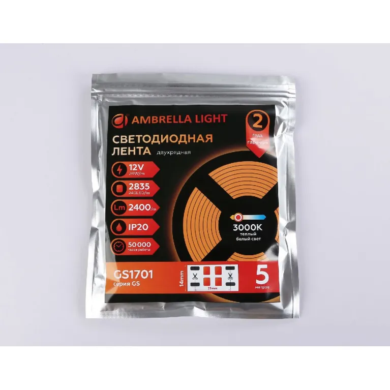 Светодиодная лента двухрядная Ambrella Light LED Strip 12В 2835 24Вт/м 3000K 5м IP20 GS1701 в Нижнем Новгороде