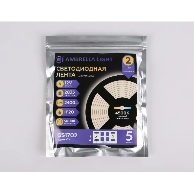 Светодиодная лента двухрядная Ambrella Light LED Strip 12В 2835 24Вт/м 4500K 5м IP20 GS1702 в Нижнем Новгороде