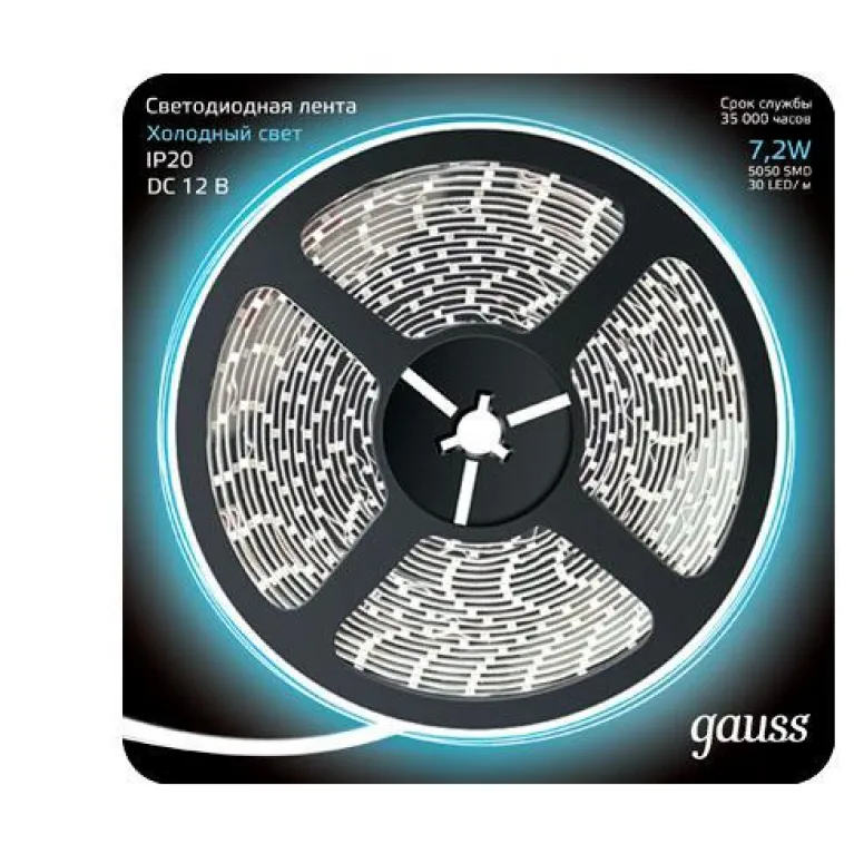 Светодиодная лента Gauss 7,2W/m 30LED/m 5050SMD холодный белый 5M 312000307 в Нижнем Новгороде
