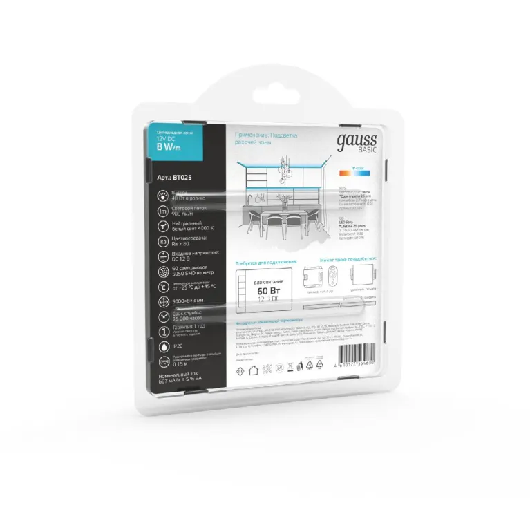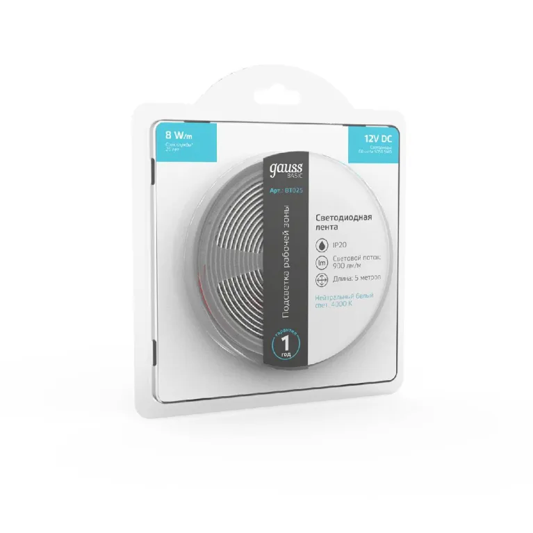 Светодиодная лента Gauss Basic 12В 5050 8Вт/м 4000K 5м IP20 BT025 в Нижнем Новгороде