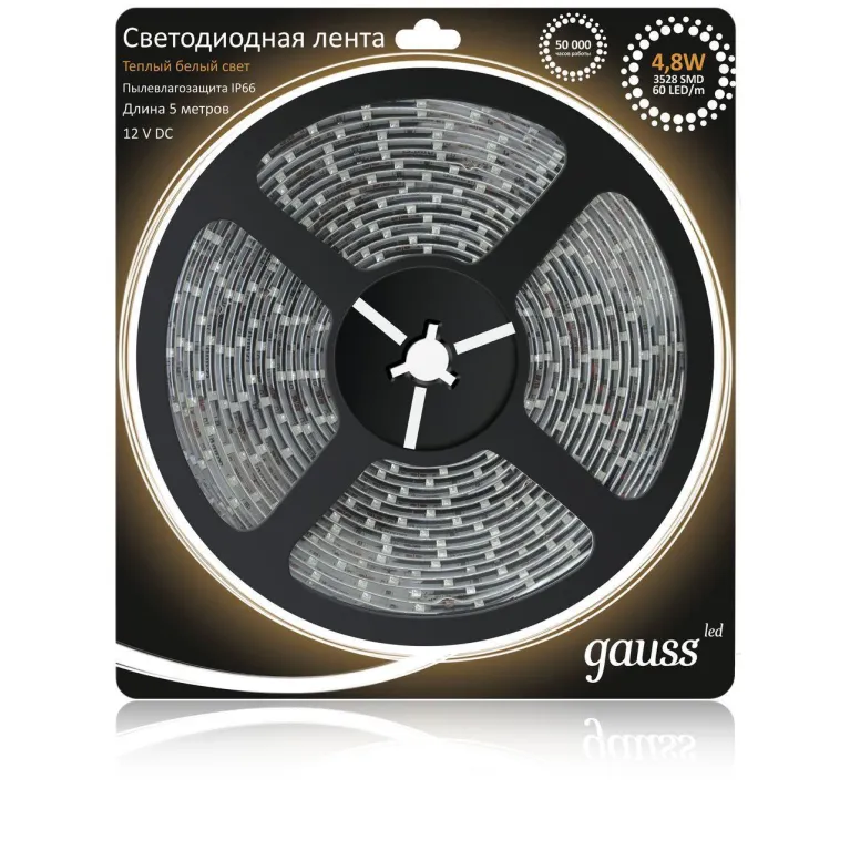 Светодиодная влагозащищенная лента Gauss 4,8W/m 60LED/m 2835SMD теплый белый 5M 311000105 в Нижнем Новгороде