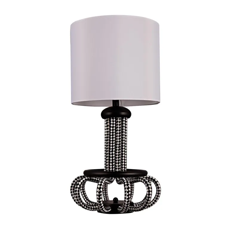 Корпус лампы выполнен из прочного металла с черным матовым покрытием, который прекрасно гармонирует с различными стилями интерьера. Текстильный абажур белого цвета придает светильнику лёгкость и изящество, обеспечивая мягкое и равномерное рассеивание света.