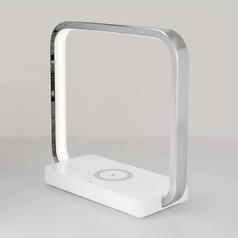 Корпус лампы выполнен из прочного металла с хромированным покрытием, которое придает изделию блеск и долговечность. Текстильный абажур белого цвета придает светильнику лёгкость и изящество, обеспечивая мягкое и равномерное рассеивание света.