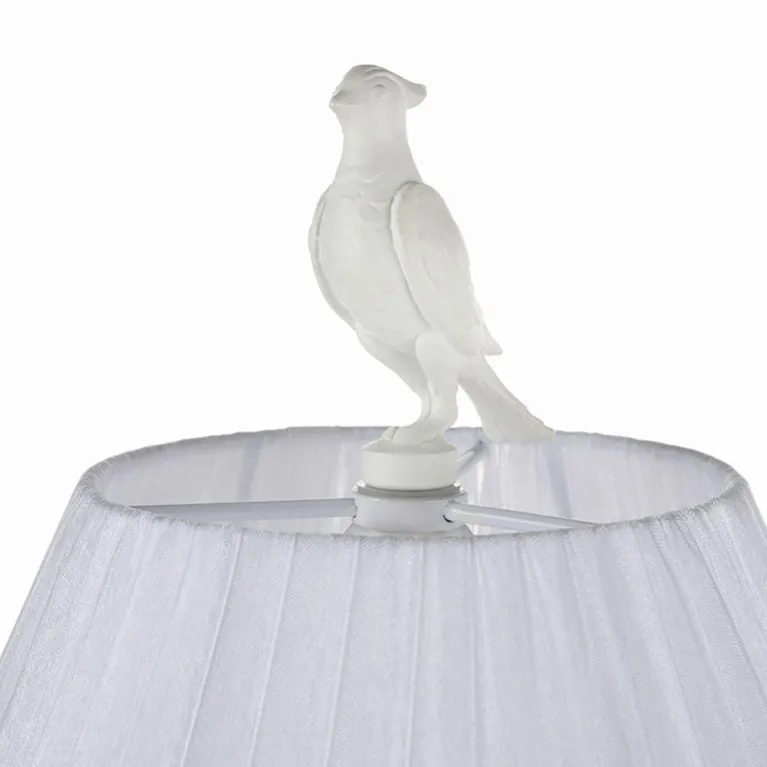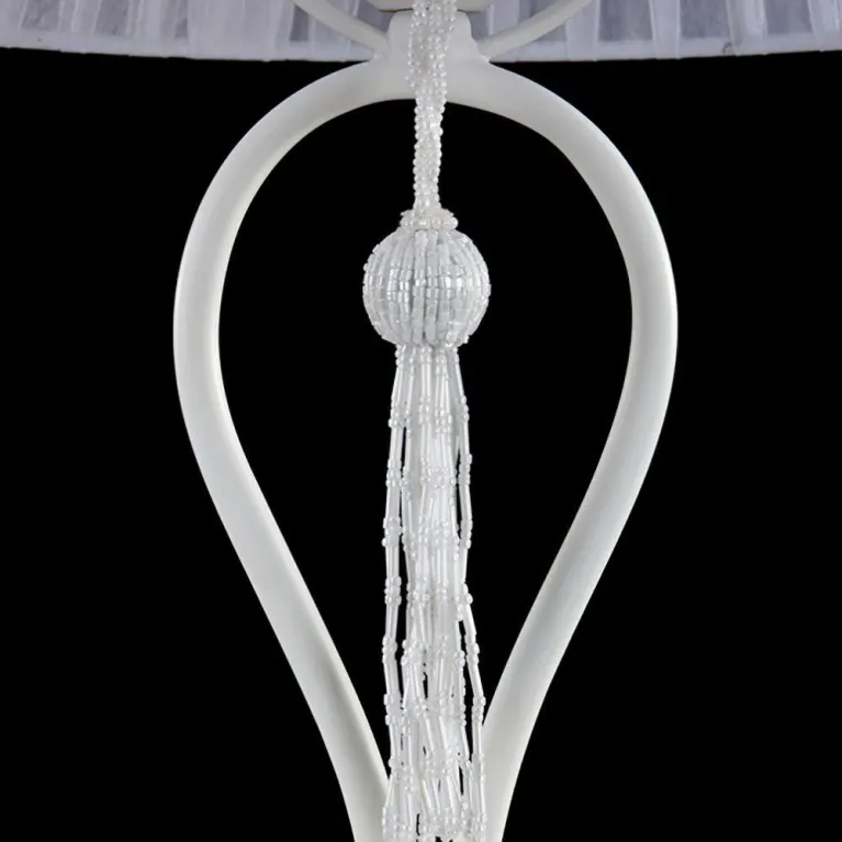 Корпус лампы выполнен из прочного металла с черным матовым покрытием, который прекрасно гармонирует с различными стилями интерьера. Текстильный абажур белого цвета придает светильнику лёгкость и изящество, обеспечивая мягкое и равномерное рассеивание света.