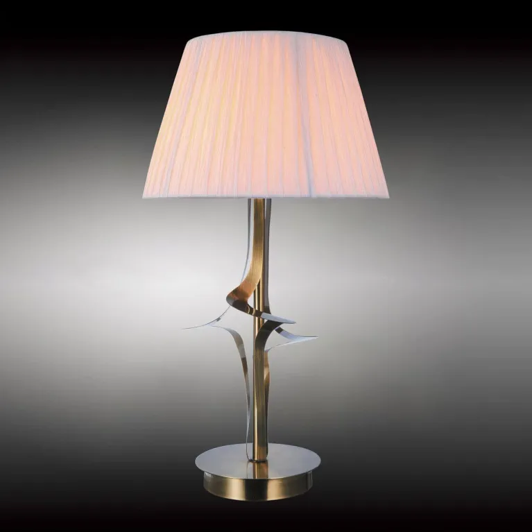 Корпус лампы изготовлен из прочного металла, что обеспечивает её долговечность и надежность. Основание диаметром 120 мм позволяет светильнику устойчиво стоять на столе, не скользя и не шатаясь.
