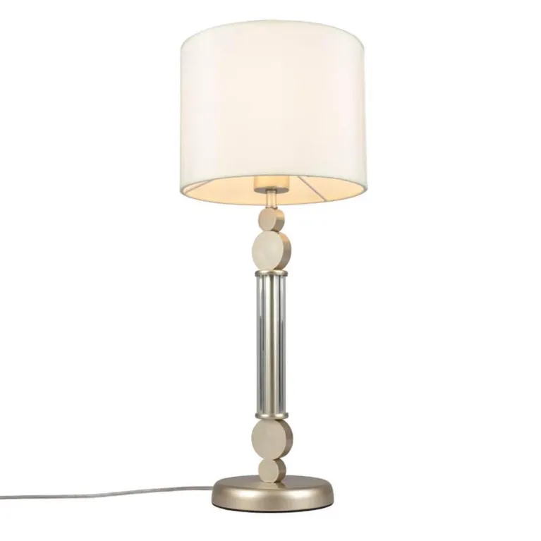 Корпус лампы выполнен из прочного металла с черным матовым покрытием, который прекрасно гармонирует с различными стилями интерьера. Текстильный абажур белого цвета придает светильнику лёгкость и изящество, обеспечивая мягкое и равномерное рассеивание света.