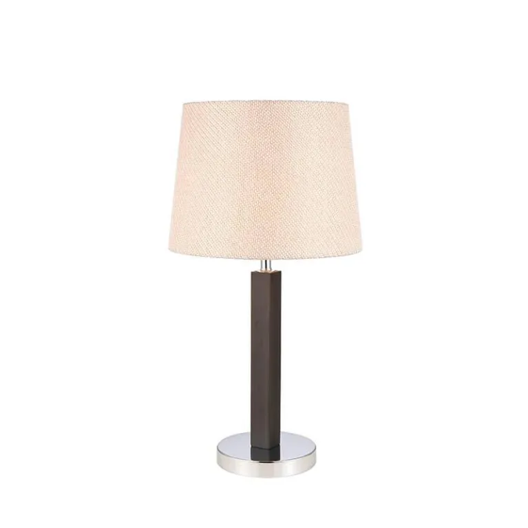 Корпус лампы выполнен из прочного металла с черным матовым покрытием, который прекрасно гармонирует с различными стилями интерьера. Текстильный абажур кремового цвета придает светильнику лёгкость и изящество, обеспечивая мягкое и равномерное рассеивание света.