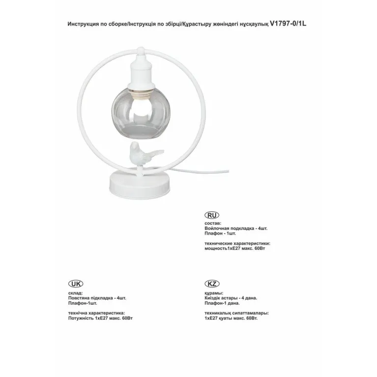 Настольная лампа Vitaluce V1797-0/1L оснащена патроном для лампы с цоколем E14, что позволяет использовать разнообразные виды ламп – от традиционных накаливания до современных энергосберегающих и светодиодных.