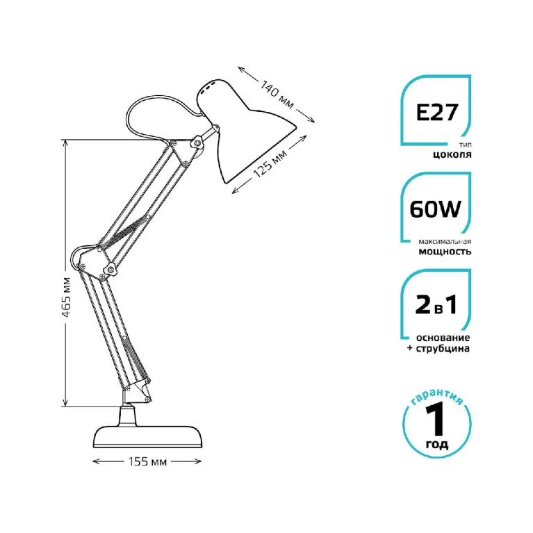 Настольная лампа Gauss GT0022 в Нижнем Новгороде из коллекции российского производителя Gauss гармонично впишется в интерьер, оформленный в современном стиле. Это красивый и надежный осветительный прибор для офиса. Общей мощности 60 Вт достаточно, чтобы осветить площадь 3 м2. Материал, из которого сделан плафон черного цвета – металл. Для изготовления арматуры использован металл. Настольная лампа GT0022 привлекательно выглядит, защищена от пыли в соответствии со стандартом IP20 и будет долго служить владельцу. Цена этой модели при заказе в интернет-магазине «Иллюзия света» – 2 450 ₽.