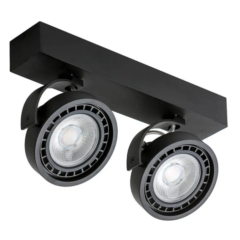 Светильник оснащен двумя источниками света типа GU10, что позволяет использовать как традиционные, так и светодиодные лампы мощностью до 35 Вт. Это обеспечивает яркое и направленное освещение, идеально подходящее для акцентной подсветки или создания уютной атмосферы в комнате.