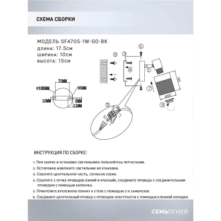 Благодаря поворотному механизму, спот Seven Fires Kelda SF4705/1W-GD-BK позволяет легко регулировать направление светового потока, что делает его функциональным и удобным в использовании. Компактные размеры светильника (высота 130 мм, диаметр 55 мм) позволяют разместить его в любом уголке вашего дома.