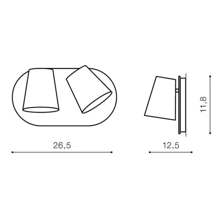 Корпус светильника изготовлен из высококачественного металла с черным матовым покрытием, что придаёт ему элегантный и современный вид. Спот имеет два плафона, направленных в разные стороны, что обеспечивает равномерное и яркое освещение пространства.