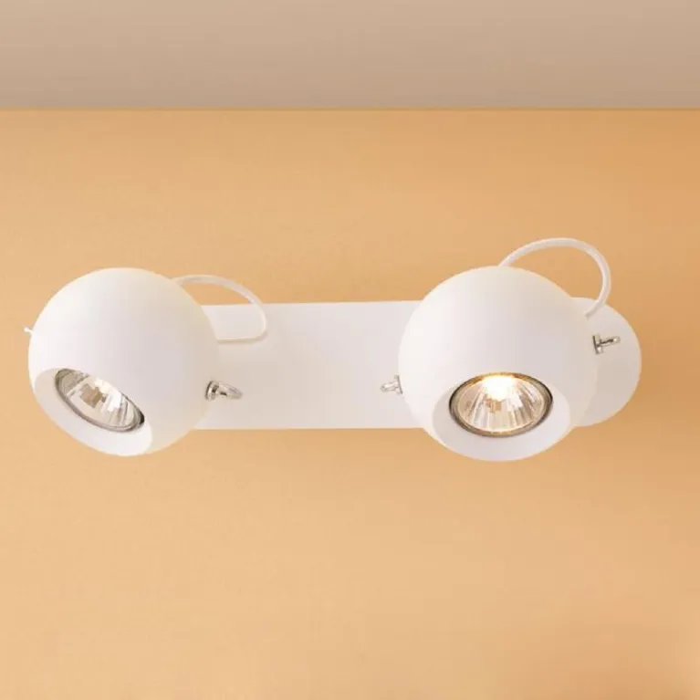 Светильник оснащен двумя плафонами, направленными в разные стороны, что позволяет создавать точечное освещение и акцентировать определенные зоны в помещении. Плафоны изготовлены из прочного и долговечного акрила, обеспечивающего равномерное рассеивание света.