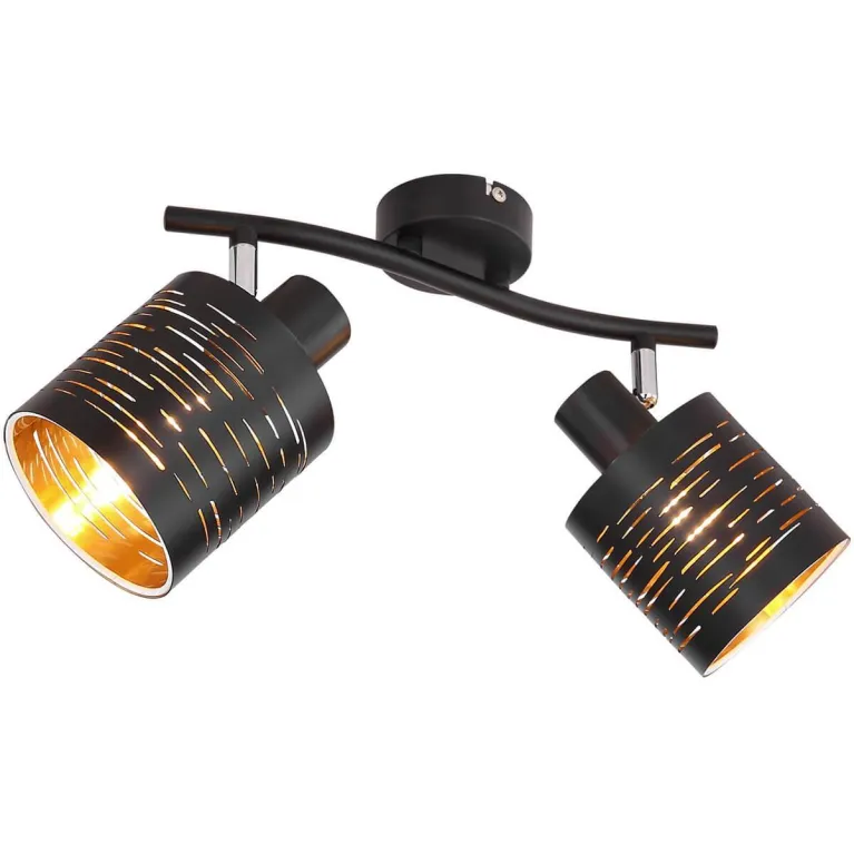 Корпус светильника изготовлен из прочного металла и имеет черное матовое покрытие, что придаёт ему элегантный и современный вид. Спот оснащен двумя источниками света с цоколем GU10, что позволяет использовать как традиционные, так и светодиодные лампы мощностью до 33 Вт.