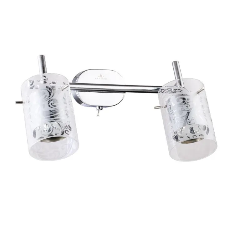 Светильник оснащен двумя плафонами, что позволяет направлять свет в разные стороны, обеспечивая более яркое и равномерное освещение. Патрон E14 позволяет использовать светодиодные или традиционные лампы мощностью до 40 Вт, что гарантирует достаточный уровень освещения и экономичное энергопотребление.