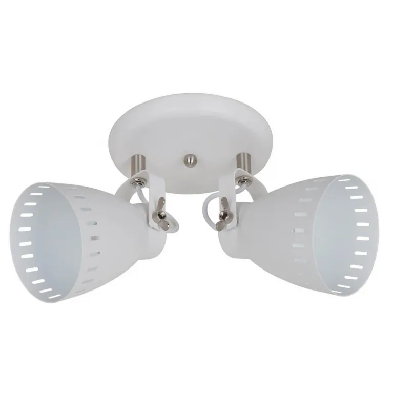 Корпус светильника изготовлен из прочного металла, что обеспечивает его долговечность и надежность. Спот оснащен двумя плафонами, которые позволяют создавать мягкое и направленное освещение, идеально подходящее для акцентной подсветки или локального освещения отдельных зон комнаты.