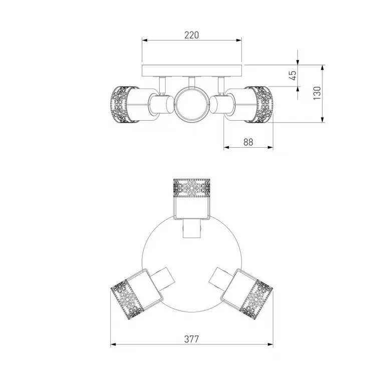 Светильник совместим с лампами типа GU10, что позволяет использовать как традиционные, так и энергоэффективные светодиодные лампы, в зависимости от ваших предпочтений и потребностей. Максимальная мощность каждой лампы — 50 Вт, что гарантирует достаточный уровень освещения.