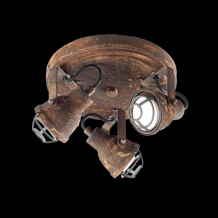 Корпус светильника изготовлен из высококачественного металла с черным матовым покрытием, что придаёт ему элегантный и современный вид. Спот оснащен тремя источниками света с цоколем GU10, что позволяет использовать как традиционные, так и светодиодные лампы мощностью до 35 Вт.