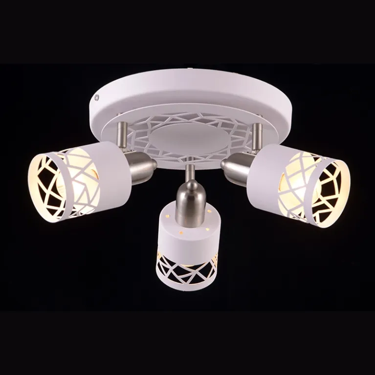 Светильник оснащен тремя источниками света, что обеспечивает яркое и равномерное освещение пространства. Патрон E14 позволяет использовать лампы мощностью до 40 Вт, что гарантирует достаточный уровень света и создает комфортную атмосферу в помещении. Благодаря поворотному механизму плафоны спота могут изменять направление света, позволяя адаптировать освещение под свои потребности.